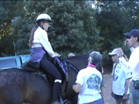 | ▲2004年ハルは怪我をして出場断念。アンが代理でボーガスに騎乗して参加。ハルが真剣にアンに指示を出している光景。フォレスト・ヒルで |
